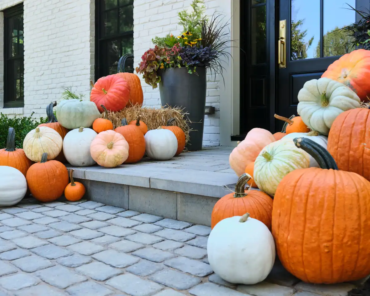A step up from the Basic, our Classic Collection offers more pumpkins, more variety, and two bales of hay for extra dimension. It’s the perfect choice if you’re looking to add fullness and festive impact to your display. Choose the DIY drop-off, or let our team style it for you with the optional design add-on.