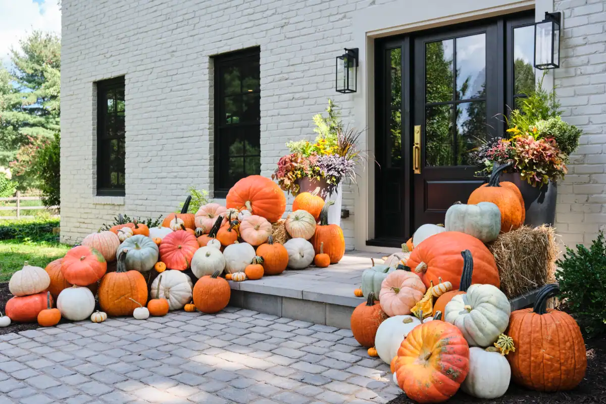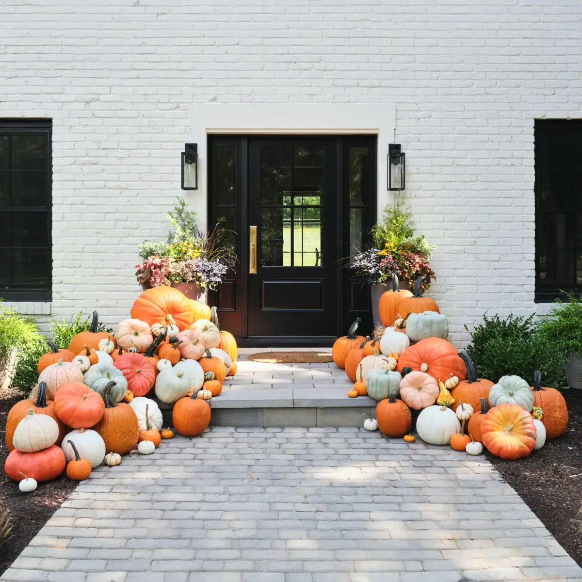 The Signature Collection is made for true pumpkin lovers and makes a bold statement. Featuring two impressive Grand Prize Pumpkins along with our largest variety of specialty pumpkins, ghost pumpkins, and jack-o-lanterns, this cascading display is designed to wow. Perfect for wide porches, multi-step entries, or anyone hosting a fall gathering, it’s a show-stopping centerpiece — with styling and design included.